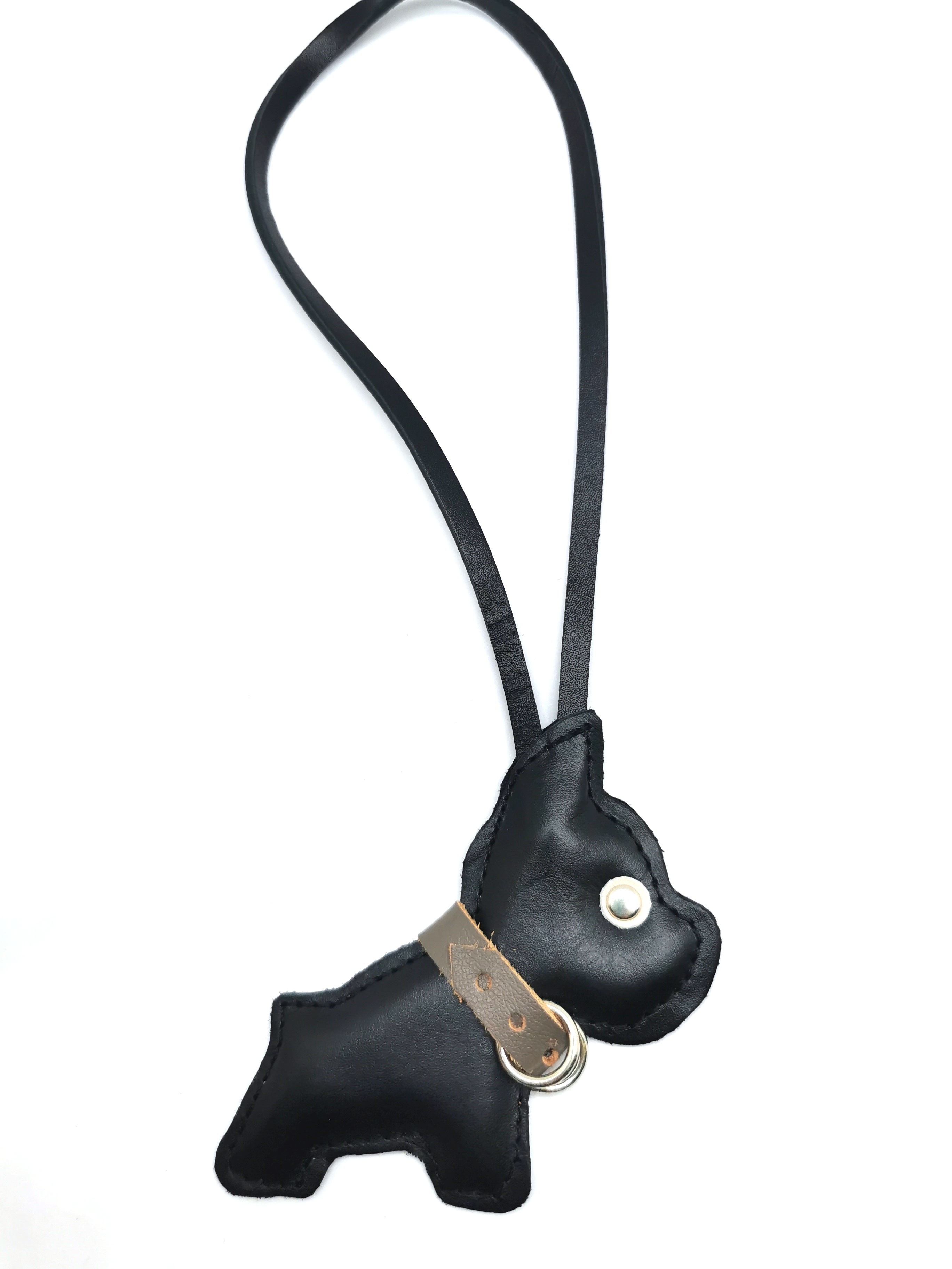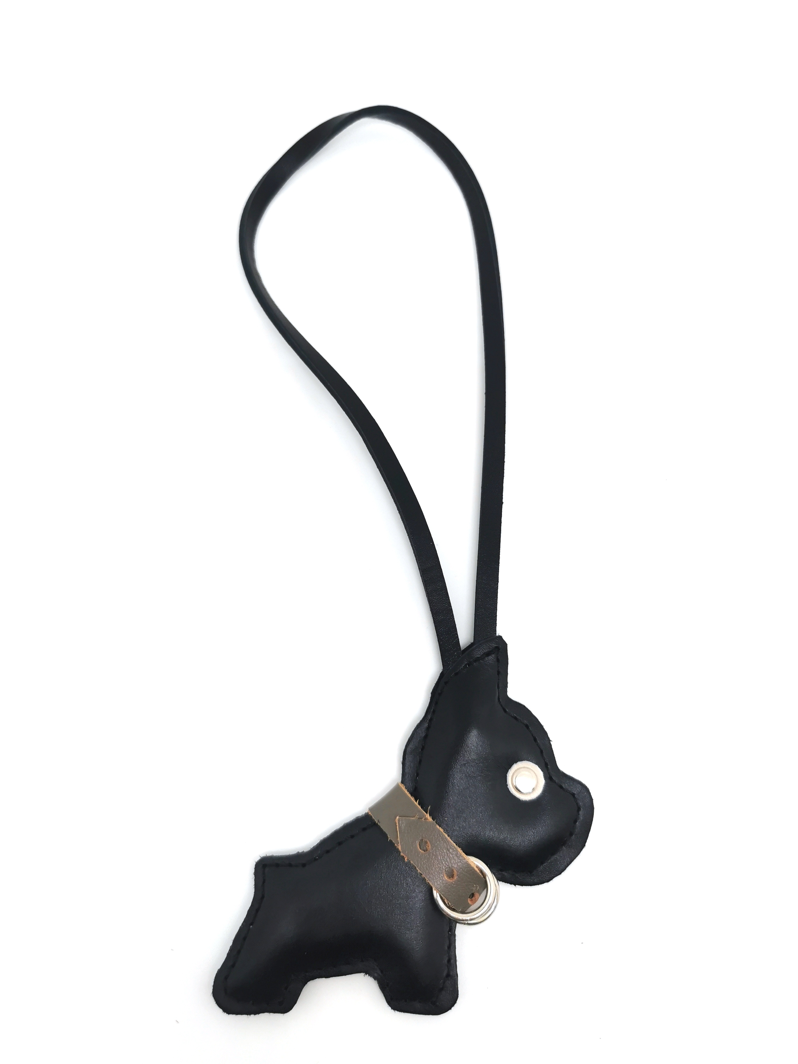 Такая мелочь, на первый взгляд, как брелок для ключей может многое сказать о его владельце. Ведь такой аксессуар сопровождает нас каждый день, являясь нашим верным спутником. Добротный брелок из натуральной кожи необычной модели в виде фигуры собачки подчеркнет вашу индивидуальность, поможет сделать ваш стильный образ завершенным. Такой брелок будет и практичным аксессуаром и запоминающимся подарком для ценителей и любителей животных.
