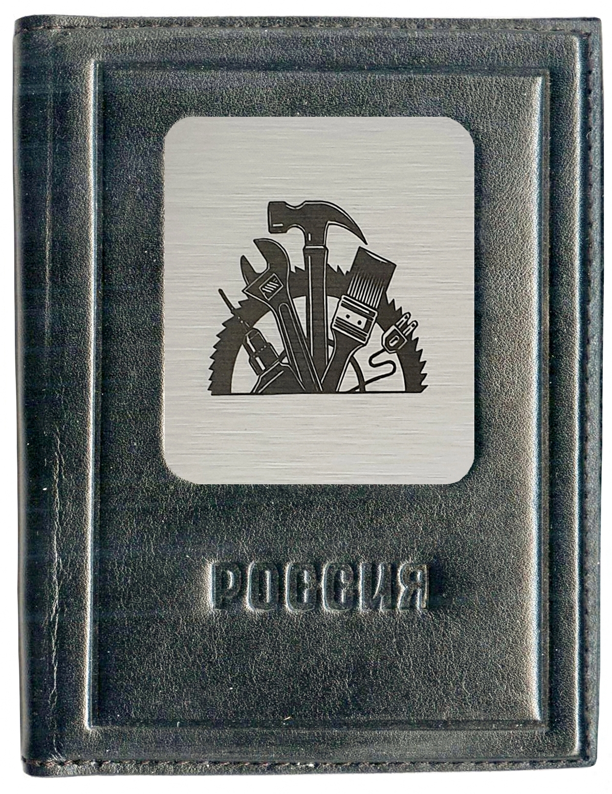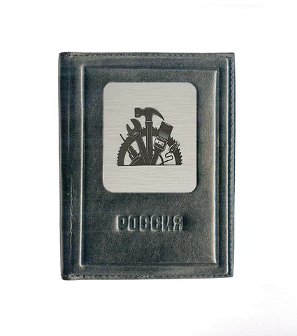 Обложка для автодокументов «Строителю». Цвет черный