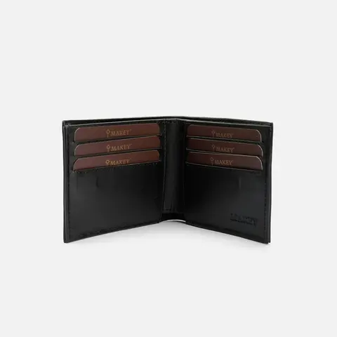 Комплектация: 2 отделения для купюр, карман для мелочи, 6 секций для кредитных карт, 2 потайных кармана