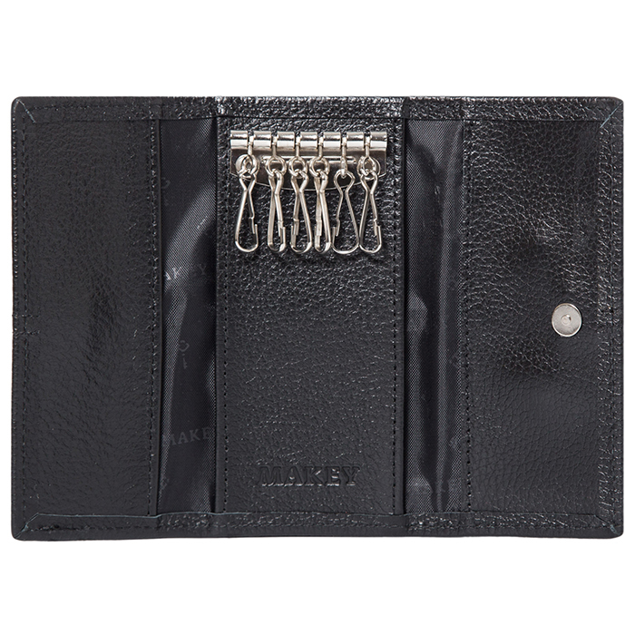 Футляр для ключей из натуральной кожи с лаконичным дизайном закрывается на кнопку и имеет 6 креплений-карабинов для ключей.