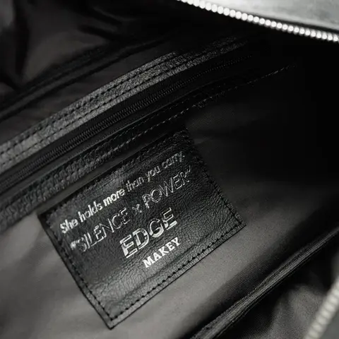 Edge — грань между формой и свободой. Компактная кожаная сумка-багет для тех, кто выбирает легкость без компромиссов. Уникальная геометрия силуэта задает ритм — четкий, но не жесткий. Дизайнерский элемент — объемная 3D-печать с посланием Just Be — работает как манифест коллекции Silence x Power: быть собой, без усилий доказать. Регулируемые ремни дают выбор — носить в руке для точного образа или на плече для движения в потоке дня. Внутри — продуманная организация: основное отделение для главного и компактный карман для того, к чему нужен мгновенный доступ — телефон, карты, ключи. Никакого перегруза — только суть.Натуральная кожа черный эсквайр — особенность, которая делает каждую сумку уникальной. Этот материал живет вместе с владельцем: в процессе носки кожа трансформируется, создавая индивидуальный рисунок. Две одинаковые сумки через время становятся разными — история использования отпечатывается на поверхности. Форма багета держит структуру, оставаясь мягкой к телу. Универсальная в контексте — от делового дня до вечерней встречи.