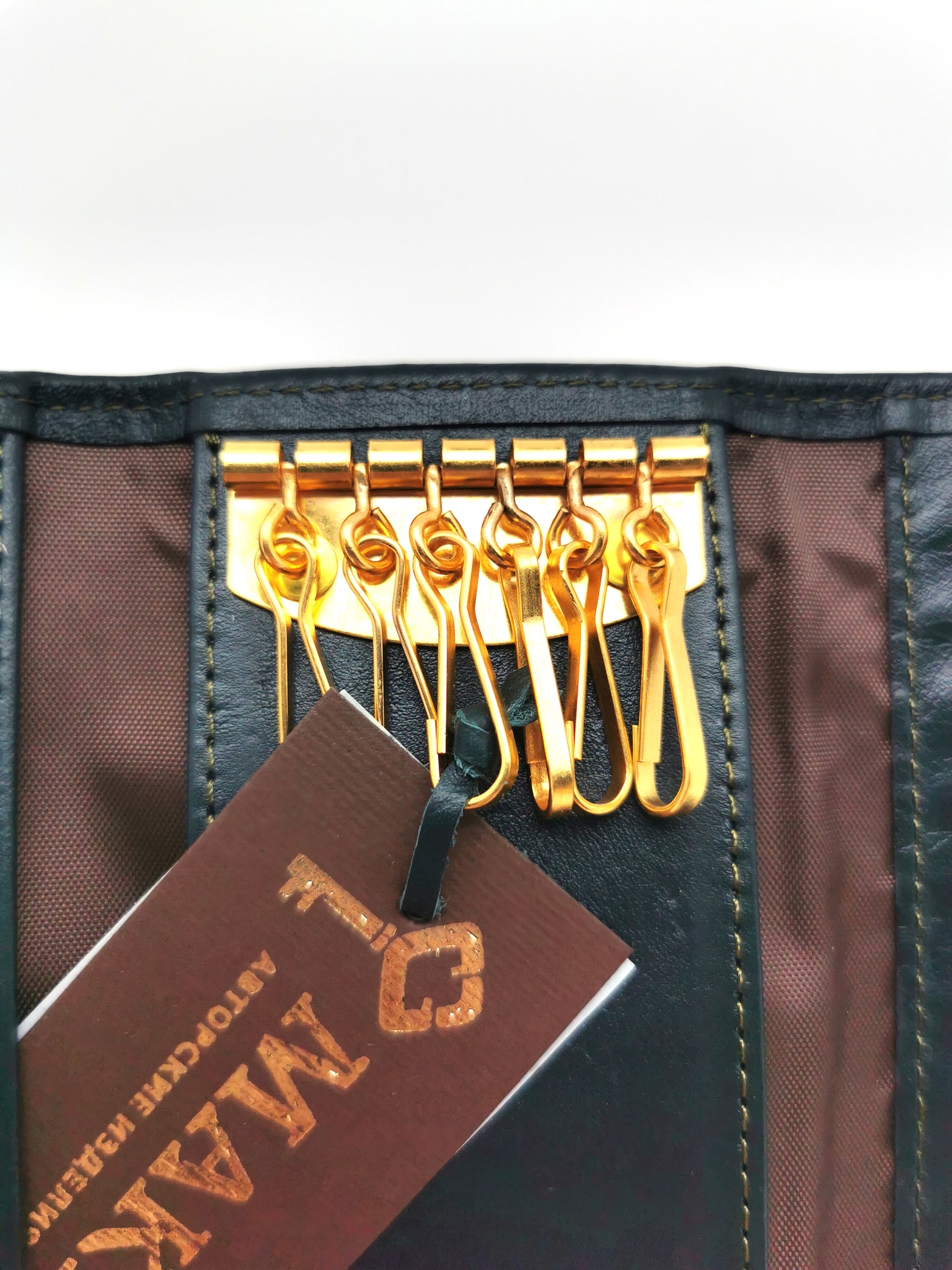 Надежный футляр для ключей – это незаменимый аксессуар. В нем удобно хранить ключи, он убережет карманы одежды и подкладку сумки от возможных повреждений. Наличие футляра для ключей не только подчеркивает аккуратность владельца, но и свидетельствует о его статусе. Данная модель закрывается на скрытый магнит, карабины для ключей позволят хранить в футляре 6 ключей. Такой незаменимый аксессуар отличается не только своей надежностью и долговечностью. Изделие имеет строгий лаконичный дизайн, прекрасно подойдет успешным деловым людям, кто привык принимать быстрые и правильные решения, для кого время – деньги. Имеются в двух оттенках зеленого.