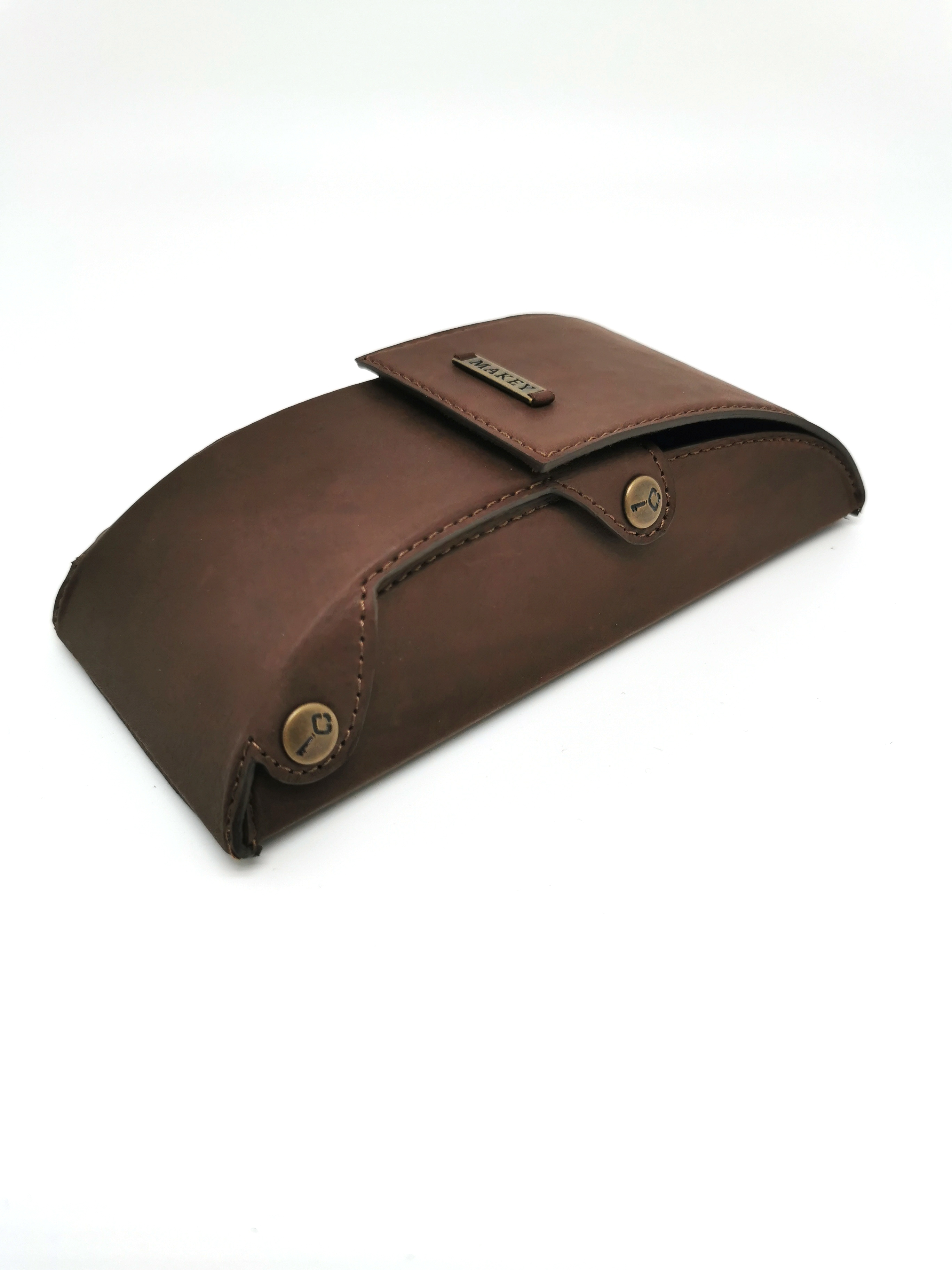 Предлагаемая модель подойдет для очков в оправе из любого материала любой формы. Благодаря уплотненному жесткому каркасу футляра, очки будут надежно сохранены от механических повреждений. Закрывается футляр на клапан с магнитной кнопкой, что предотвратит выпадение очков. Отличаясь своей долговечностью и надежностью, футляр для очков из натуральной кожи сохранит ваши очки, станет прекрасным подарком на любой случай. Данная модель с нестандартным дизайн-решением – выбор неординарной, яркой личности. Художественная вставка, выполненная техникой декоративной гравировки по коже, выделяет такое сувенирное изделие среди других футляров для очков.